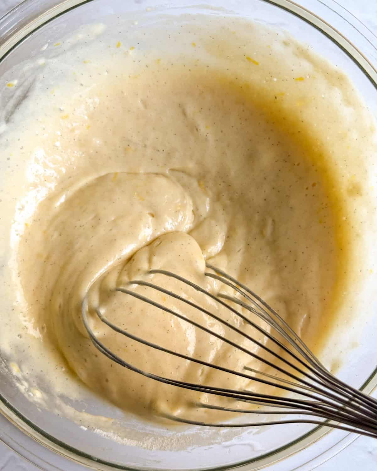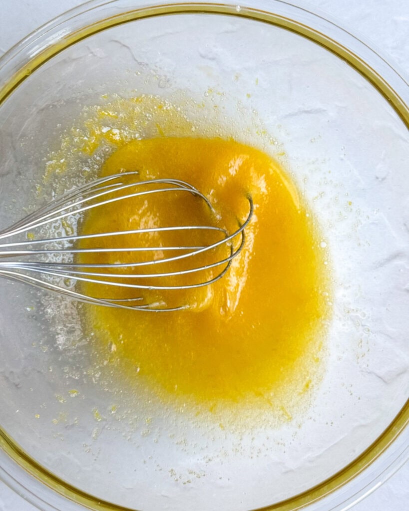 - Add the egg and whisk until light and fluffy. Add the yogurt, lemon juice and vanilla and whisk to combine.