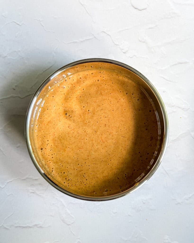 - Pre-heat oven to 180°C (350°F). Line the inside of a 6-inch cake pan with parchment paper and set aside.
