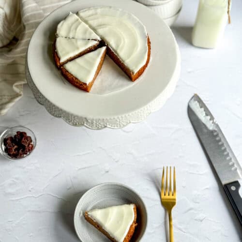 I tripled this recipe to make a bigger cake and substituted the flour with coconut flour (1 cup flour should be substituted with 1/4-1/3 cup coconut flour!) and used around 1 teaspoon of stevia drops instead of 150 grams of brown sugar substitute, and it was so delicious and moist! Thank you for sharing this amazing recipe! I didn’t have cream cheese, so I made a topping from yogurt, milk, dates, cinnamon and cashew nuts blended together, which I totally recommend!
