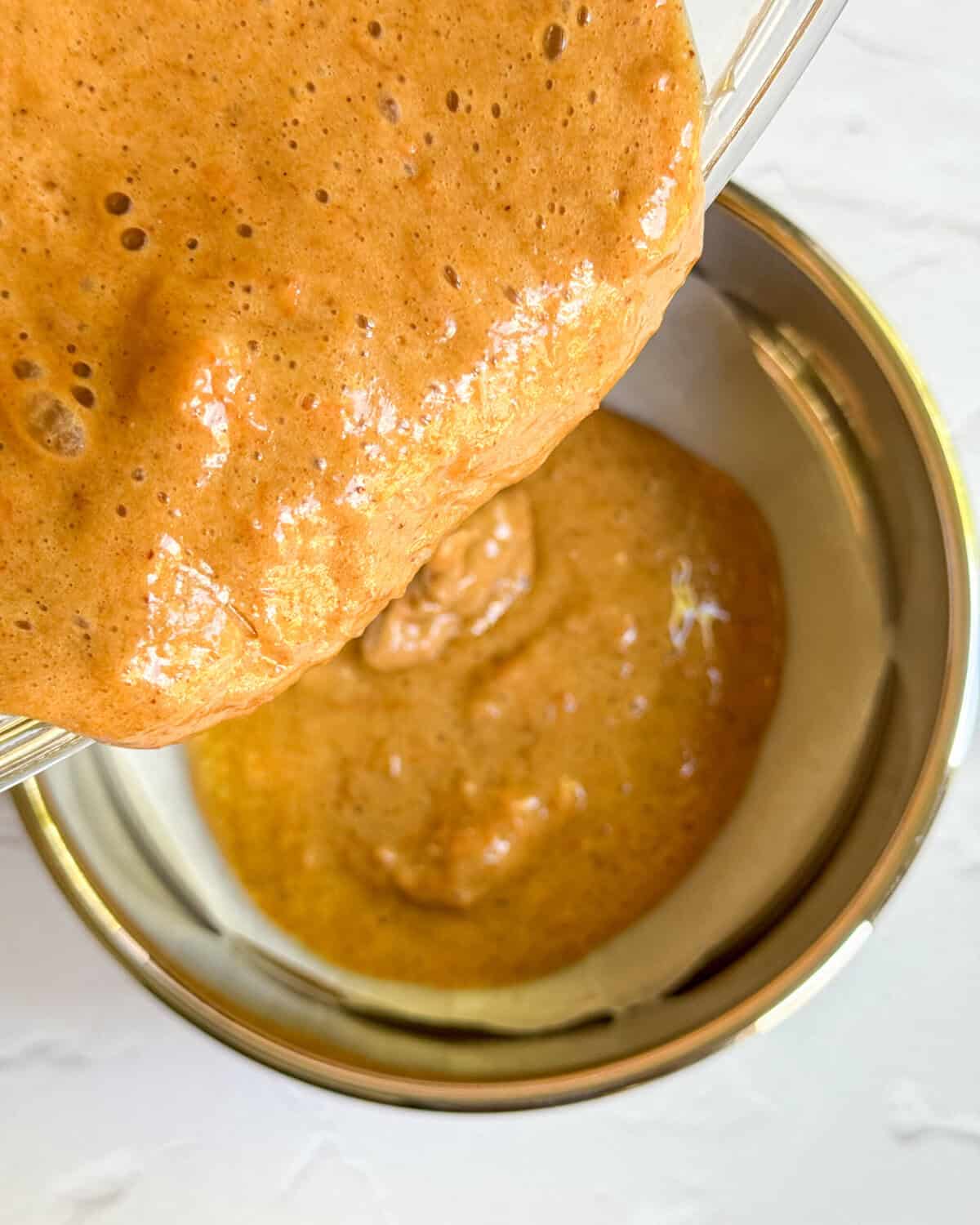 - Pre-heat oven to 180°C (350°F). Line the inside of a 6-inch cake pan with parchment paper and set aside.