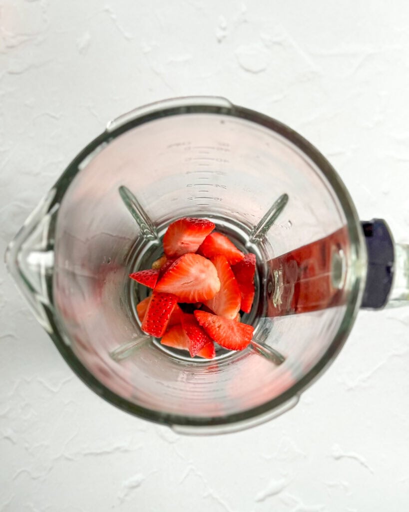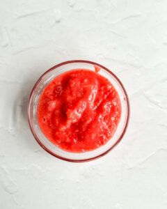- Make the strawberry puree by blitzing the fresh strawberries in a blender until completely smooth. Transfer to a small bowl and set aside.