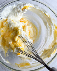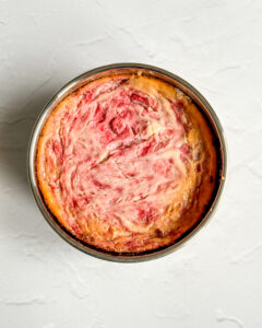 Strain the cheesecake batter – If you see any lumps in your batter, it’s better to strain it rather than continuing to whisk which risks over-mixing the batter. By straining the batter, you get all the lumps out without over-mixing!